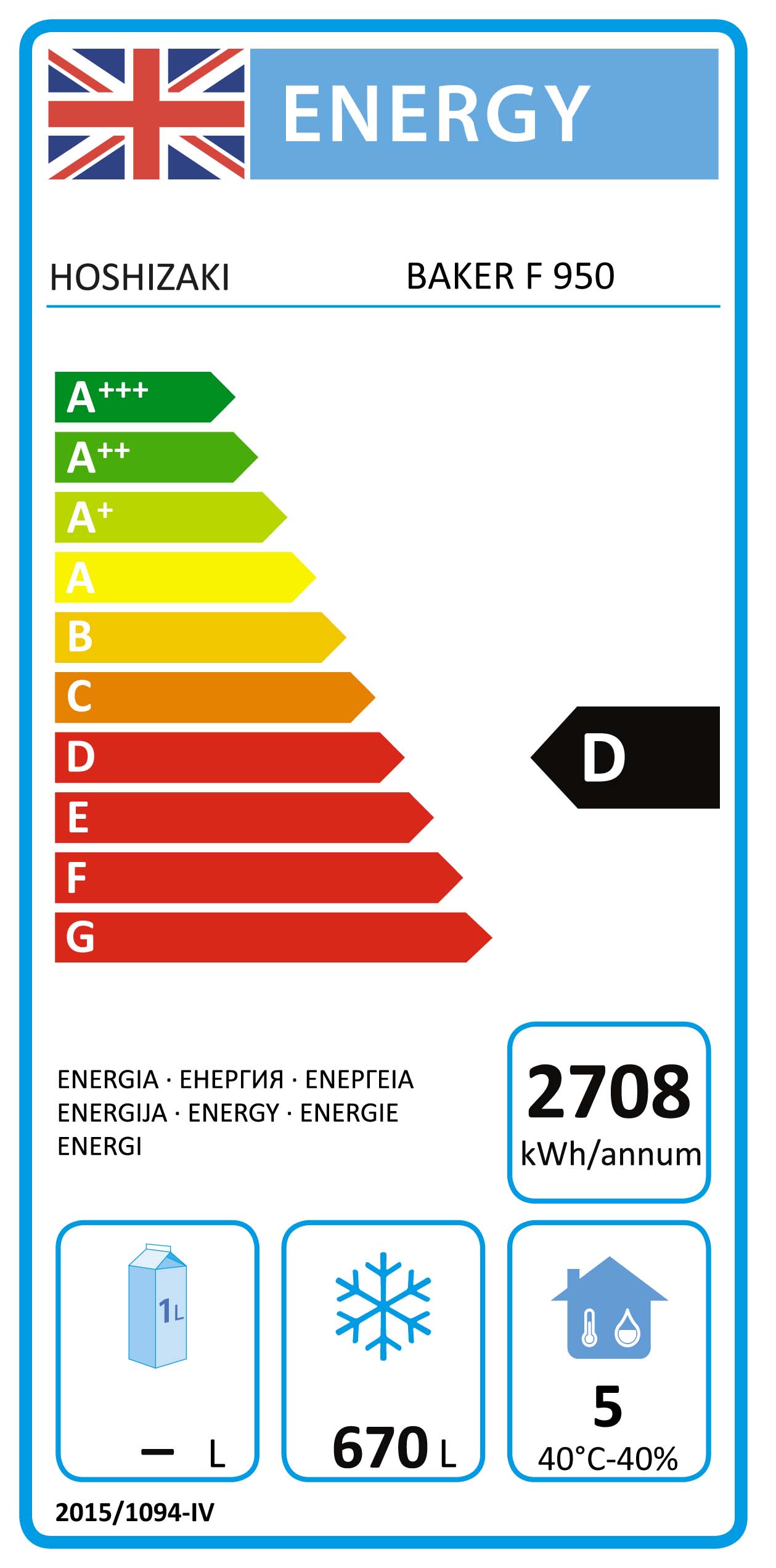 Topklasse bakkerij vrieskast Hoshizaki F 950 L DR. Geschikt voor platen van 80 x 60, Bruto inhoud van 1000 liter. Netto inhoud van 670 liter. Voorzien van 25 set plaatsteunen. Voorzien van automatische ontdooiing en 6 jaar garantie! op de onderdelen. Temperatuur van -25 tot -5 graden Celsius. LED verlichting en deuropener d.m.v voetpedaal met overbelastingsbeveiliging.