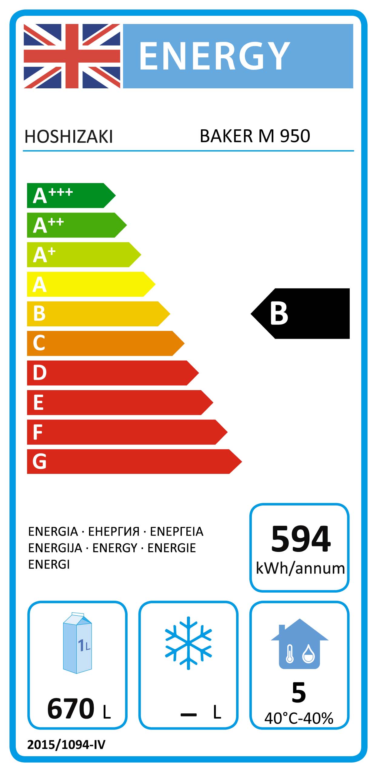 Topklasse bakkerij koelkast Hoshizaki M 950 L DR. Geschikt voor platen van 80 x 60, Bruto inhoud van 1000 liter. Netto inhoud van 670 liter. Voorzien van 25 set plaatsteunen. Voorzien van droge werking en 6 jaar garantie! op de onderdelen. Temperatuur van -5 tot +12 graden Celsius. LED verlichting en deuropener d.m.v voetpedaal met overbelastingsbeveiliging.