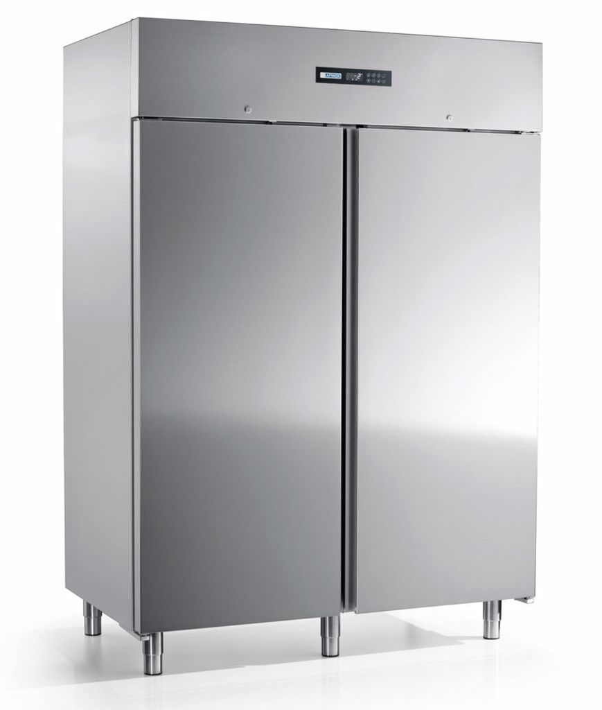 Rechts en links afgehangen zelfsluitende deuren.Afmetingen : 1466 x 847 x 2090 mm. (BxDxH). In- en uitwendig van RVS 304. Temperatuurbereik van -2 tot.+7 graden. Controler met werking voor hoge of lage luchtvochtigheid. Volautomatische ontdooing met dooiwaterverdamping. Voorzien van 3 grijze draadroosters per deur. Uitpakken en installeren mogelijk tegen meerprijs. Energieklasse C, verbruik slechts 776 kWh per jaar, klimaatklasse 5. Vele opties zoals o.a. zwenkwielen, LED verlichting mogelijk. Ook leverbaar met glasdeuren en/of zonder koelmachine.